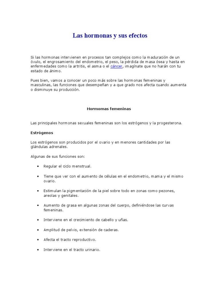 Pues bien vamos a conocer un poco ms sobre las hormonas femeninas y masculinas las. Las hormonas femeninas juegan un rol clave en la experiencia de ser mujer. Las hormonas femeninas tienen la función esencial de posibilitar y regular la función del aparato genital de la mujer.